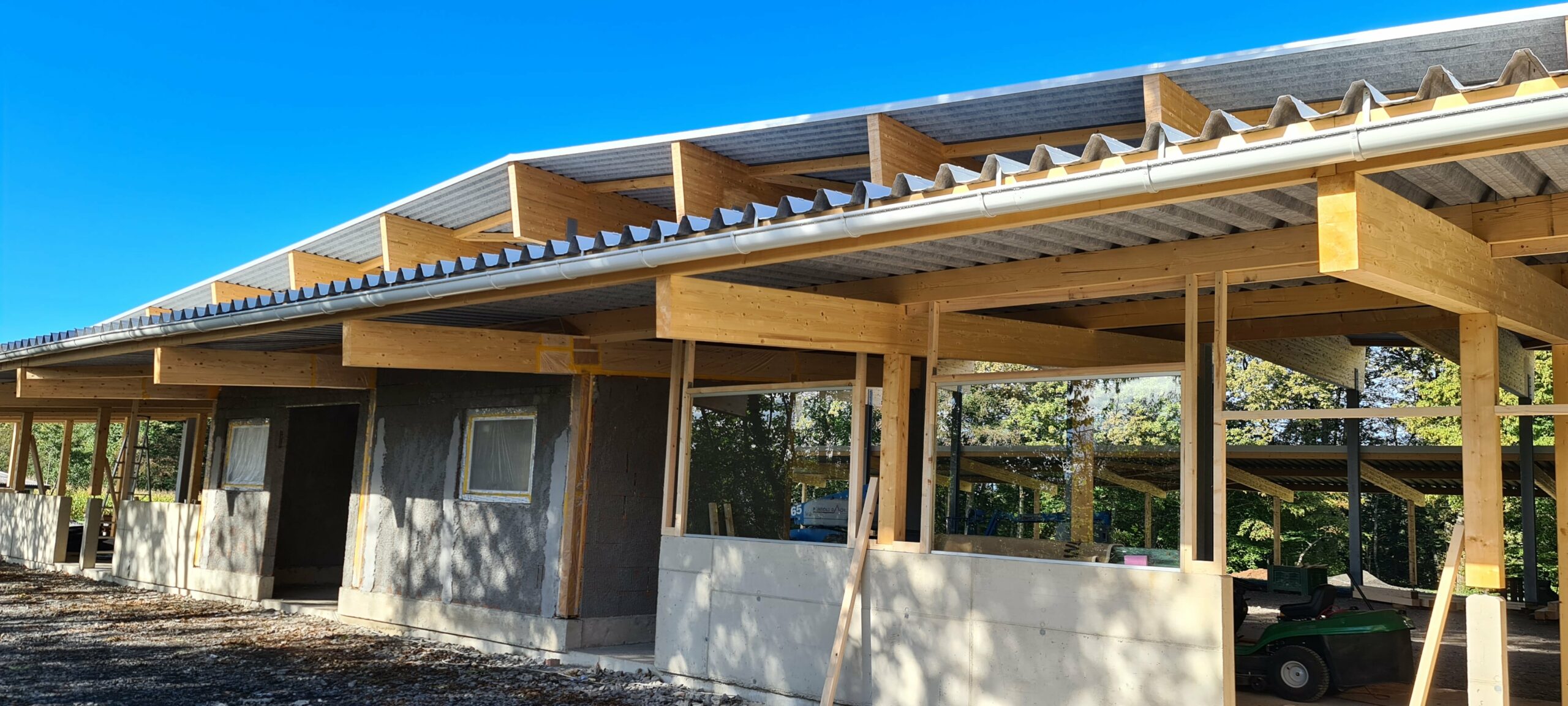 Zusätzlich wurde eine Ferienwohnung eingerichtet. Die Außenanlagen wurden ebenfalls gestaltet und umfassen die Installation einer Photovoltaikanlage zur Energieerzeugung, einen Regenwasserspeicher zur Bewässerung sowie einen Pferdebadeteich. Wir waren bei diesem Projekt als Generalplaner tätig und für die komplette Umsetzung verantwortlich.