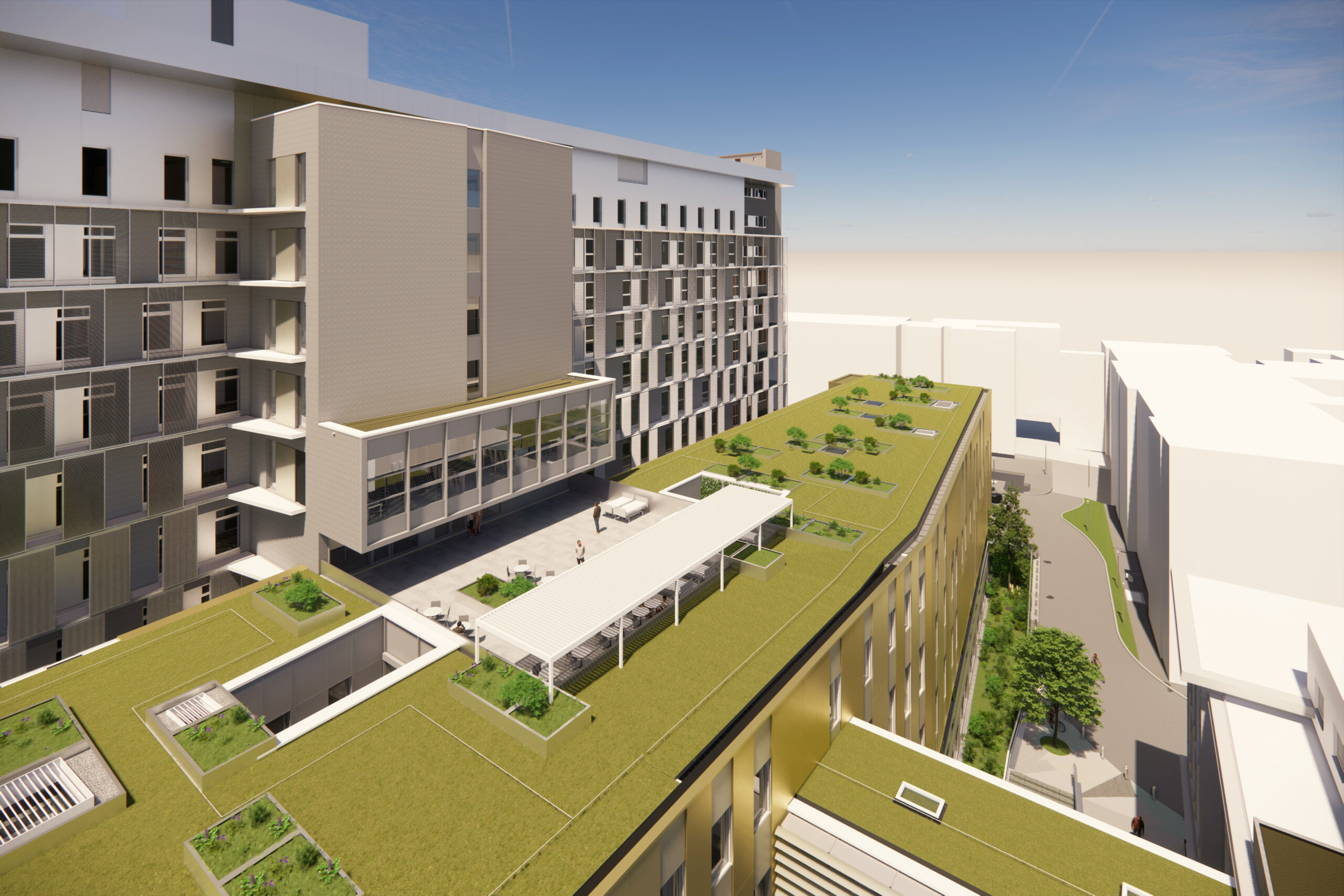 Modern hospitals encompass a wide range of functions in the healthcare sector. As hospital planners, our primary task is to design buildings that are cost-effective and space-efficient. At the same time, we aim to create flexible spaces that can easily integrate technological advancements in the years and decades to come. This presents a significant challenge when it comes to renovating existing structures.